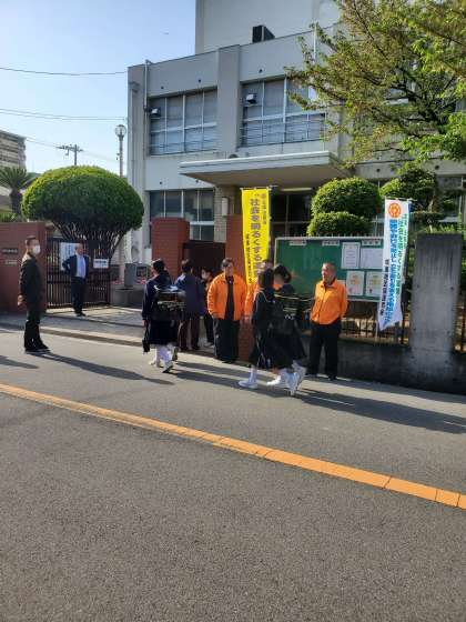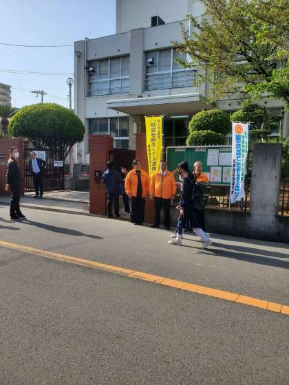 4月11日、本校正門で登校して来る生徒たちに、地域の方々が、「おはようございます」の声かけをしていただきました。生徒たちも、笑顔で挨拶を返していました。