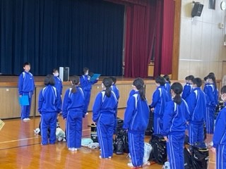 出発式では、教頭先生や生徒代表の決意宣言、生徒と先生よりそれぞれルールや時間を守り、仲間との様々な経験を通して思い出に残る最高の一泊移住にしようとお話がありました。