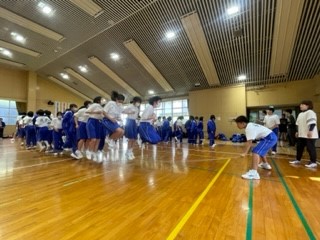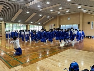 一泊移住でも8分間でクラス一丸となって回数を競いあっています。まだ少し10回を超えるのは難しいようですが、各クラス大きな声で掛け声をかけ合って記録に挑戦しています。