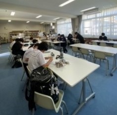 5月に入り希望者による数学はなまる学習会が始まりました。3年生は月曜日、1、2年生は木曜日の放課後に図書室で問題集を使って学習に取り組んでいます。