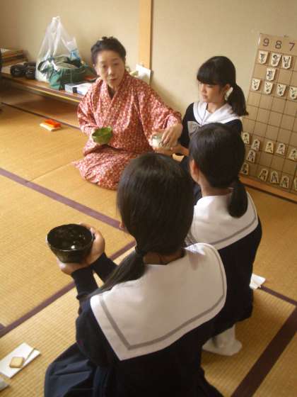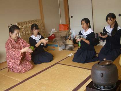 本校和室にて地域の方々が月2回、お茶席教室にこられています。