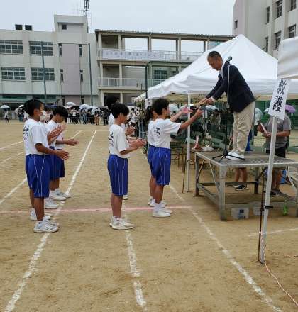 各学年の結果は全学年1組が優勝しましたが、どのクラスもみんなで協力して頑張ったと思います。途中雨が降りましたが、これで全プログラムが終了しました。
