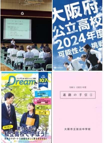 6月30日(金)3年生の保護者の皆様を対象に進路説明会が実施されました。今回は第1回ということで、年間の予定や全般的な説明が進路指導主事からなされました。また本校発行の「進路の手引き1」を含む3冊の冊子を配布いたしました。各ご家庭でお読みいただき、進路選択にご活用ください。