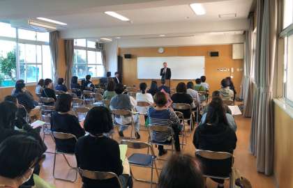 本年度は多目的室で開催され、熱心に聞き入る保護者の皆様の姿がありました。前川教頭先生からは苦手な教科や単元としっかりと向き合い、家庭での対話や生活態度など受験に対する心のあり方をお話しいただき、示唆に富んだ有意義な説明会となりました。