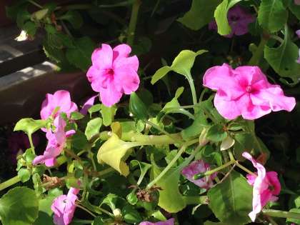 家庭科部と美化委員がお世話しているインパチェンスの花が咲いています。