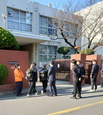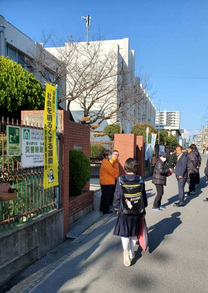 3月21日(木) 本校正門で登校して来る生徒たちに向かって、地域の方が、「おはようございます」と声かけをしていただきましたら、生徒たちも、笑顔で挨拶を返していました。