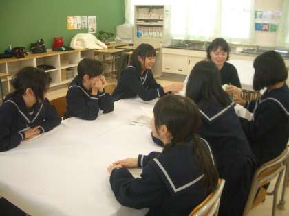 英語部の生徒は午後の出番を前にホッと一息入れているところです。