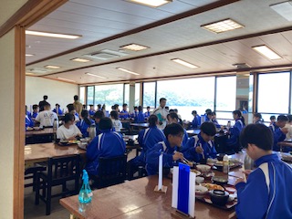 綺麗な景色を見ながら、美味しい昼食をいただきます。昼食後は、アスレチック体験をします。ジップラインとディスカバリーの2種類に分けて活動します。