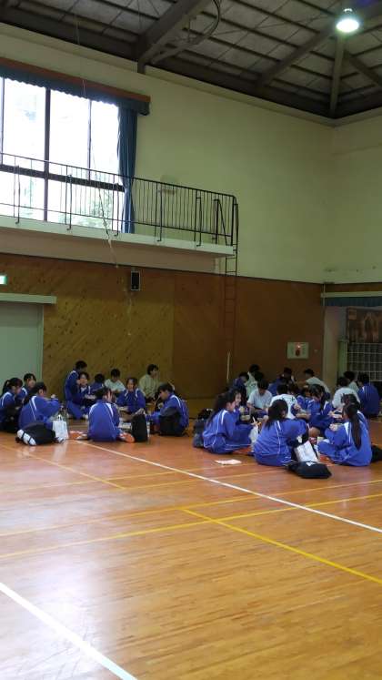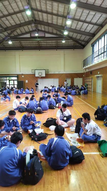 普段教室では前を向いて食べているので新鮮ですね!