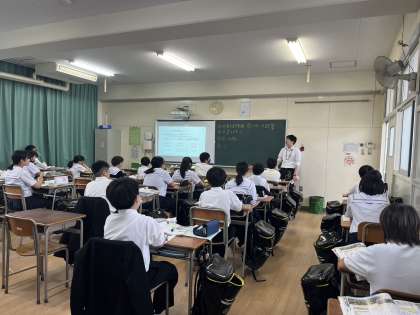今日は1年生の社会の授業を実習生の先生がされていました。 映像を使って工夫されていました。