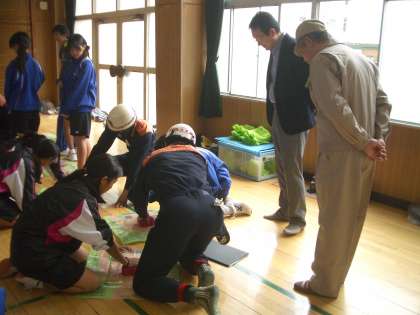 地域の方々にまざってソフトテニス部員と卓球部員が参加してくれました。