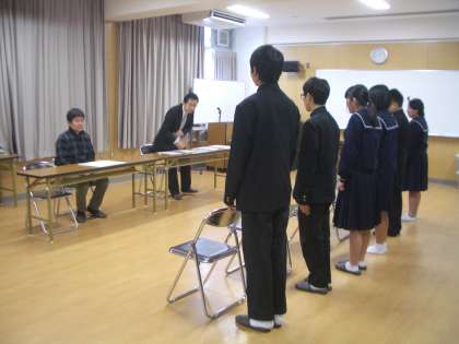 面接練習 公開日 2015/12/04 更新日 2015/12/04 出来事 今日から2組がはじまりました。 面接練習は年をまたいで行う予定で、3年生全員の面接が終了するのは1月中旬になる予定です。 いいね(0)