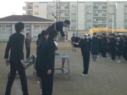 ラグビー、吹奏楽や保健委員の賞状伝達がありました。