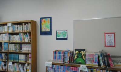 美術部の生徒さんの作品を飾りました。芸術の香り漂う図書館になりました。