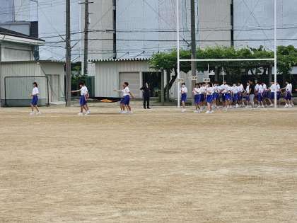 6限には3学年が揃って全体で入場行進、開会式の練習を行いました。