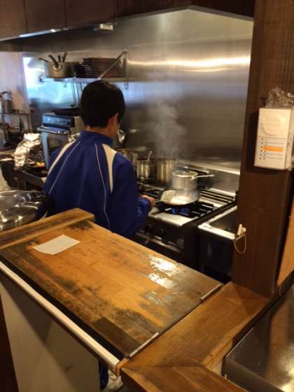 ボストンではハンバーグを焼いています。上手く焼けたかな?