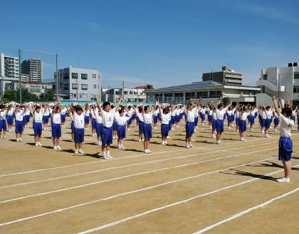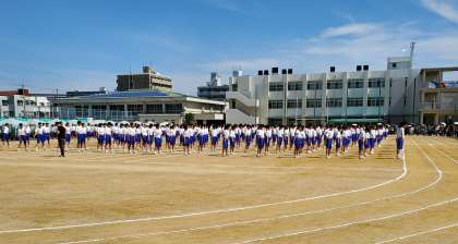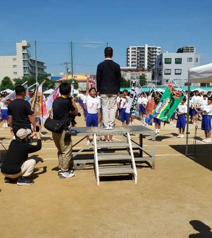 生徒代表による選手宣誓を行い、全員でラジオ体操後