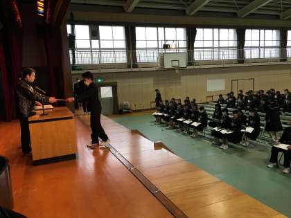 1・2年生の参列生徒も参加しての予行を行いましたが、3年生はとても立派な態度で最後まできっちりと予行を終えてくれました。