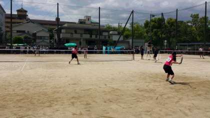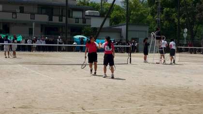 個人戦では全員が出場し、3ペアが3回戦まで進出しました。団体戦は桜宮中学校、緑中学校との試合でいずれも競ったゲームを展開しましたが、惜しくも敗戦しました。夏に向けて、また日々の練習に励んでいきたいと思います。団体戦では1年生も応援し、大きな声援で先輩のサポートに徹しました。