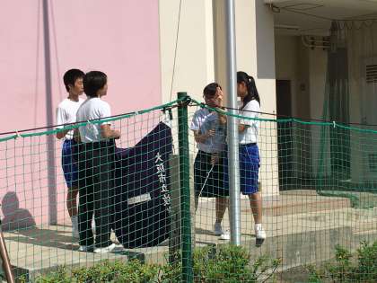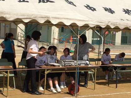 生徒会役員は開会式の、放送部はプログラム進行の練習のため残っています。