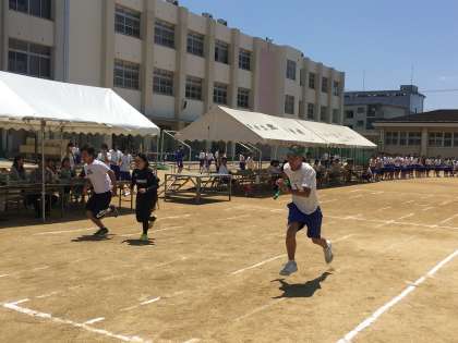 男子リレーに先生チームも参加しました。生徒の激走に及ばず第4位でした。