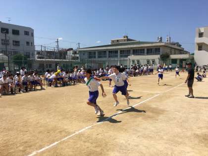 大会の最後を飾るリレーです。気温が上がる悪条件の中、集中力がとぎれることなく頑張りきった様子は、さすが放中生!立派でした。