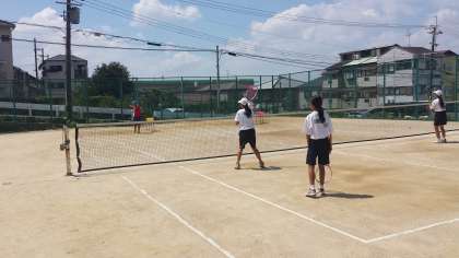 8月20日(土)にソフトテニス部は四條畷学園高校へ行って、高校生との合同練習を行いました。四條畷学園高校には、放出中出身の先輩もおり、元気に後輩にボールをあげてくれたり、見事なシュートボールを打ったりと頼もしい姿が見られました。この日も猛暑の中でしたが、一日、高校生とともに汗を流し、収穫の多い一日となりました。高校生の先輩や、顧問の先生に感謝して、立派なプレーヤーになれるように夏の練習にまた励んでいきます。