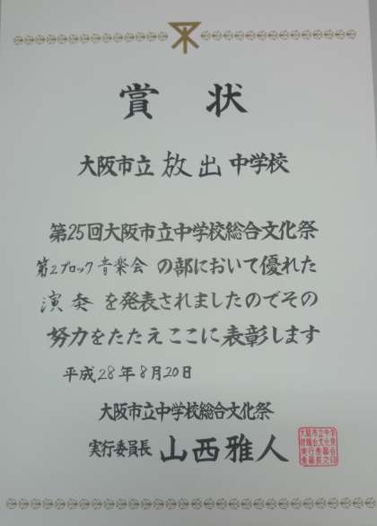 また、この出演により、来たる10月22日23日に開催される第25回大阪市立中学校総合文化祭舞台発表部門への出演が決定いたしました。