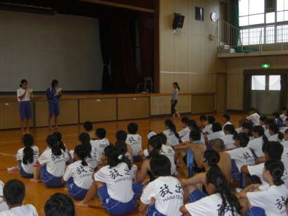 天候が雨となってしまいましたが、その雨にも負けない力強い泳ぎやしっかりとした応援ができました。体育委員は開会式の司会や準備体操でみんなの見本となってくれました。