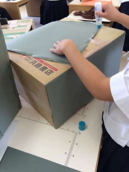 小道具の取り組みの様子です。劇で使用する硬貨を作り