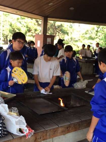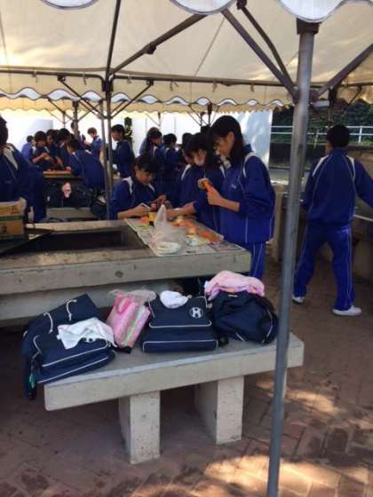 野外調理活動です。班で協力し、おいしく仕上げてください。