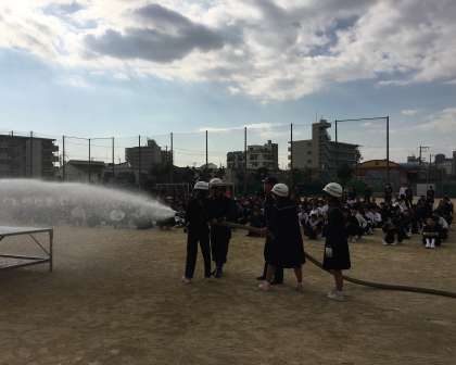 今回は水消火器・可搬式ポンプを使った放水訓練を体験しました。
