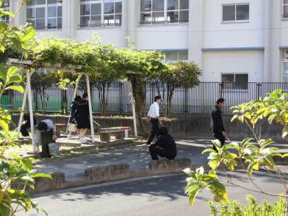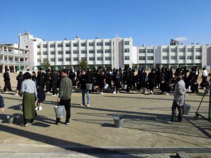 11月11日(金)5時間目に、2年生が校舎回りの道路の清掃をしました。久しぶりにポカポカと暖かい快晴の天気にも恵まれ、約20分間、空き缶や吸い殻などをごみバサミでつまみ取りました。バケツに集めたものは大阪市のごみ袋5つにもなりました。活動後の生徒の様子が、天気に負けない晴れやかさがあるように感じました。