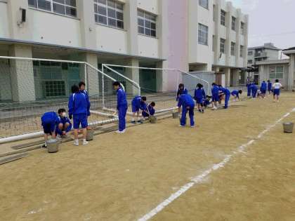 1年生は午後の時間を使い、グラウンドの溝掃除を行いました。