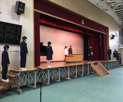 1・2年生の参列生徒も参加しての予行を行いましたが、3年生も1・2年生もとても立派な態度で最後まできっちりと予行を終えてくれました。