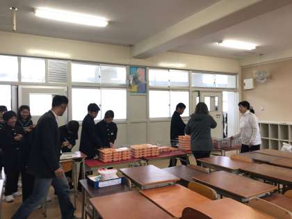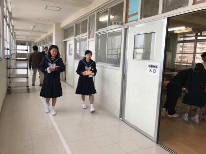 今日から給食が開始されました。半年間は弁当持参もOKの選択制となりましたが、各学年とも、演習室に取りに行き、自分の教室で食べていました。大きな混乱はなかったようで一安心です。