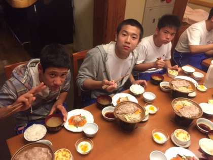 昼間に身体を動かしているので、お腹もペコペコで、すごい勢いで食べてます!