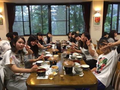 こちらも夕食風景。 たくさん遊んで、しっかり食べています!