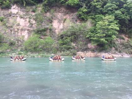 ボートの上で立ったり、ずいぶん濡れた様子です。