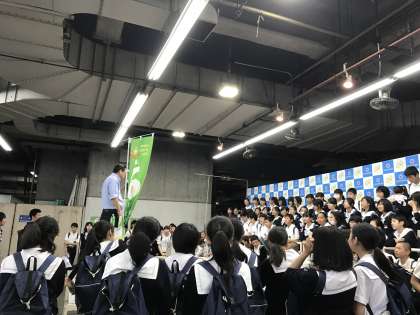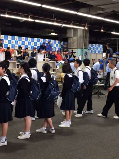 セリについて説明を受けています。みんな熱心に話を聞いています。