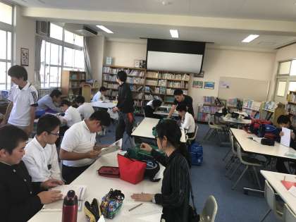 1年生から3年生までたくさんの生徒が参加しています。またボランティアの先生に加え、本校の先生方も顔を出してくださり、生徒の質問に答えておられます。