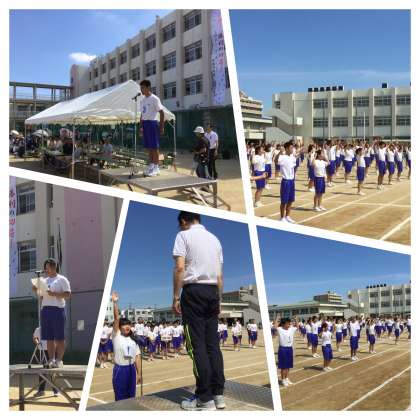 生徒会役員による力強い宣誓と、競技上の注意です。全員緊張気味で聞き入っています。