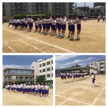 中学校最後の体育大会の思い出は、全員で参加する大縄跳びです。さすがは3年生、各学級ともたくさんの回数を跳んでいました。
