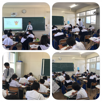 本日2限目1年4組で、教育実習生の中上勇我先生の研究授業がありました。