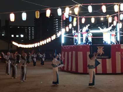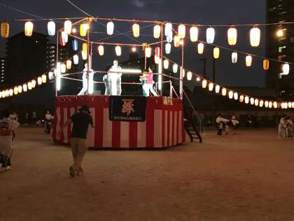 夏休みも佳境に入ってきました。4日5日と放出小学校第2グラウンドで、放出地区盆踊り大会が開催されました。親子連れをはじめ中学生の姿もたくさん見受けられ、楽しんでいました。