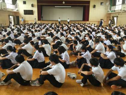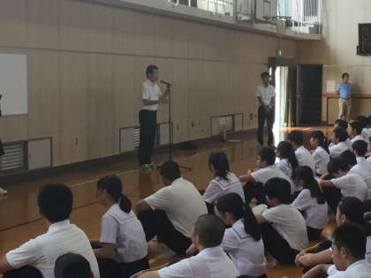 向井校長先生からは、休みモードを切り替えて規則正しい生活に戻して欲しい。また、2学期は文化祭という大きな行事があるので、力を合わせて頑張って欲しい。そして、この夏休みにたくさんの部活動で大会等で素晴らしい成果を出してくれました。