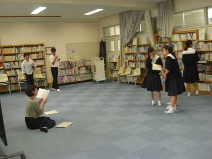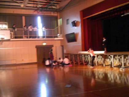 体育館では照明担当が先生の指示のもと、暗転、明転のタイミングを確認しています。キャストも各教室でわかれて細かな動きを練習したり、表現の仕方を試行錯誤しています。伝えることのむずかしさも実感しているようです。