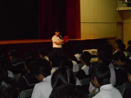 舞台発表では、生徒会・美術部・英語部・2年学年合唱・3年学年劇・吹奏楽部の発表があり、どれも見ごたえのある素晴らしい内容でした。また、発表を鑑賞する態度も校長先生のお話では、ここ3年で一番よかったとお褒めの言葉をいただきました。