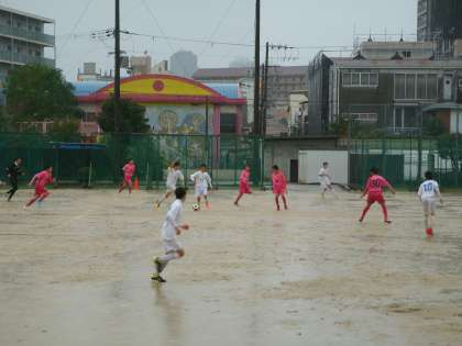 また、29日(日)には本校で大阪市U-14フレッシュリーグがありました。対戦相手は佃中学校。