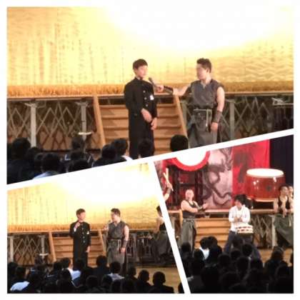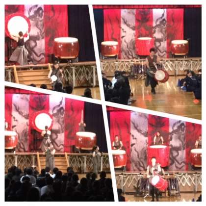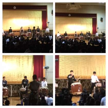 いろいろな種類の太鼓を巧みに操り、時折気合を入れるための掛け声も要所に取り入れられ、あっという間の2時間が経ち、生徒たちは感動の渦に巻き込まれていました。